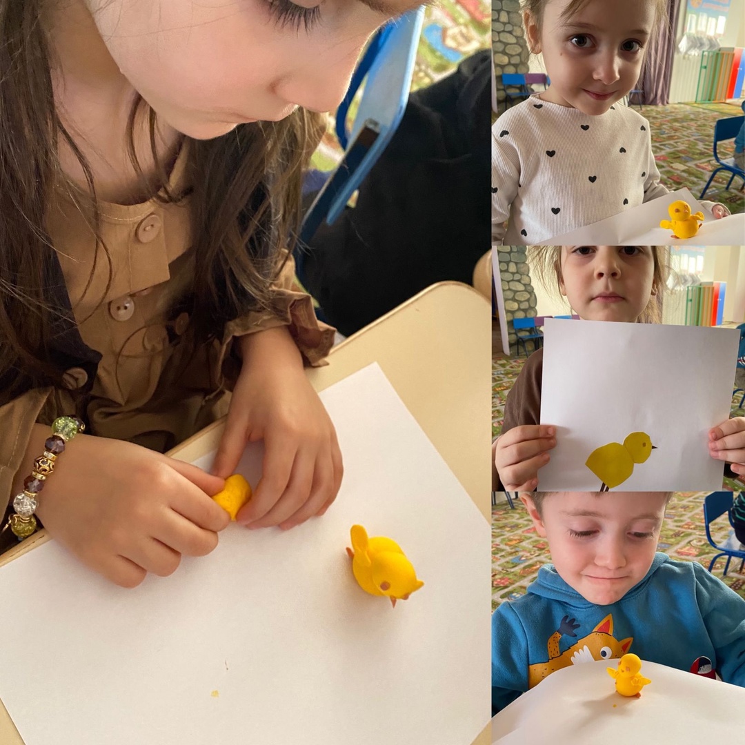 15.01.2025Средняя группа ”Медвежата”ООД Лепка (аппликация)Тема:"Цыпленок"Цель: Продолжать учить детей вырезать округлую форму ; совершенствовать технику нанесения клея на детали; учить составлять образ из отдельных деталей.Развивать самостоятельность, уверенность, аккуратность.